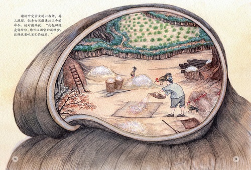 《素女》改编自中国经典民间故事《田螺姑娘》,是一部将中国传统文化元素结合国潮风格创作的原创绘本作品。作品讲述古时候,有个叫谢端的青年无意中捡到了一个大田螺,并把它带回家放在水缸里。一天,他干完活回到家中,发现灶台上竟然摆放着做好的饭菜。为了找到给他做饭的好心人,他偷偷躲在屋外,发现是住在田螺里的一位姑娘做的饭。原来姑娘是玉帝派来帮他的,被谢端发现后她只好走了。后来谢端靠自己的双手过上了好日子,还修了一座素女祠来纪念那位田螺姑娘。