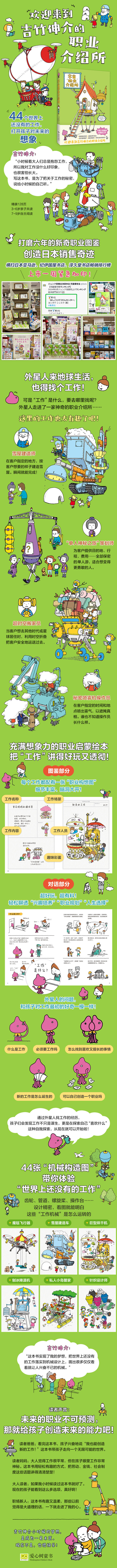 一个外星人迫降在地球回不去了,他决定先找份工作,在地球上好好生活。可是“工作”是什么,要去哪里找呢?外星人走进了一家神奇的职业介绍所,这里的工作人员给他介绍了44个新奇的工作,抛高高庆祝员、洗手液种植户、故事摩天轮管理员、超时空搬家员……外星人会选什么工作呢?