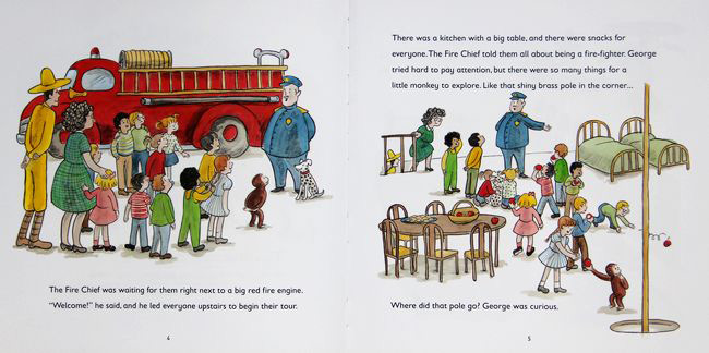George and the man with the yellow hat take a trip to the firehouse where George finds all sorts of new things to explore. When one curious monkey meets a company of unsuspecting firefighters, a big adventure is sure to follow.