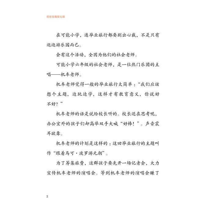 “可能小学的历史任务”系列图书包含四本:《咚咚战鼓闯战国》《哒哒马蹄到汉朝》《摇摇纸扇到宋朝》《悠悠苍鹰探元朝》,讲述了可能小学的学生穿越回古代,体验古人生活、学习历史知识的故事。可能小学是作者王文华用想象建造的一所学校,在可能小学里,什么事都可能发生,可能小学学生的校园生活也异常精彩。战国、汉朝、宋朝、元朝,四个朝代,四个故事,枯燥的历史知识被讲解得轻松有趣,让小朋友们在读故事的过程中,不知不觉爱上历史。