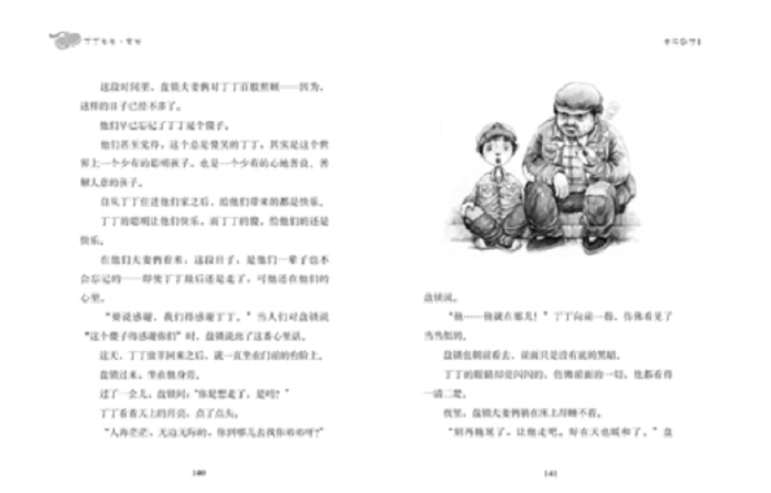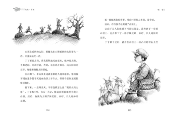 丁丁是在当当走失之后的第五天突然消失的。 初几天,他成日成夜地守在路口等弟弟。他的等待,十分固执。他一动不动地盘腿坐在那儿,像块大石头,望着村外的来路。有几只在路边一蹦一跳觅食的麻雀,以为他不是一个活物,只是一团类似于土堆儿的东西,居然跳到他腿上,.歪着脑袋,看了看他裤腿上的一个破洞,嘴巴用力拽了拽布丝。见拽不动,又飞到了他的头上,以为头发是堆乱草,居然在“草丛”里寻找起食物来,终没有发现食物,才振翅飞到别处去。 奶奶劝不回他,、只好将饭菜送到路口。 饭菜还是要吃的,他一点儿也不拒绝,一边大口吞咽,一边继续眺望远方。 有时,奶奶会陪着他坐一会儿。 无论是他一个人坐在那儿,还是奶奶陪着他一起坐在那儿,都会引来许多目光。这些眼睛默默地看着,心里有一股酸酸的东西在涌动。 有时,会过来一个上了年纪的妇女,劝奶奶和丁丁回去,但他们总是摇摇头,依然坐在路口。 这个路口并不宽,有时有人牵着一头牛过来,丁丁坐在那儿,就无法通过。牵牛的人并不上前去让丁丁走开,而是牵了牛,绕道走了。 村里的孩子们上学放学,都要经过这个路口。有些孩子很快从他身边走过去,就当没有这个人似的。一个傻子,有什么好在意的呢?惹一个傻子,那么自己不就成傻子了吗?也有些孩子,觉得这个傻子很有趣,就会停下来,或歪头看看他,或用脚尖轻轻碰碰他。有个孩子叫哨子,看了看其他孩子,学着丁丁的样子,挨着丁丁盘腿坐下了,然后与丁丁一起默默地向前看去。 其他孩子见了,也一个个地坐了下来。他们完全模仿丁丁的坐姿,一坐几十个,把路口坐得满满的,把路都坐短了一截。