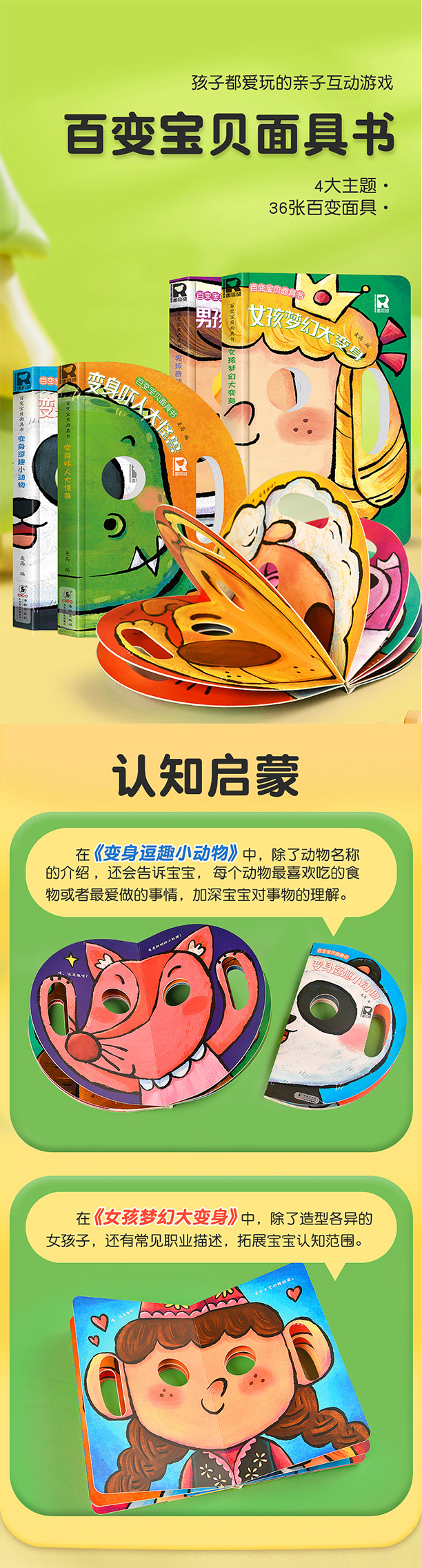4册共36张面具,内容丰富,久玩不腻图片和文字完美结合,寓教于乐
