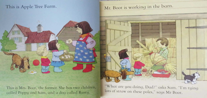 Young children will enjoy the gently amusing adventures of Poppy and Sam,their doy Rusty,Curly the pig and Woolly the sheep as they go about their lives or Apple Tree Farm