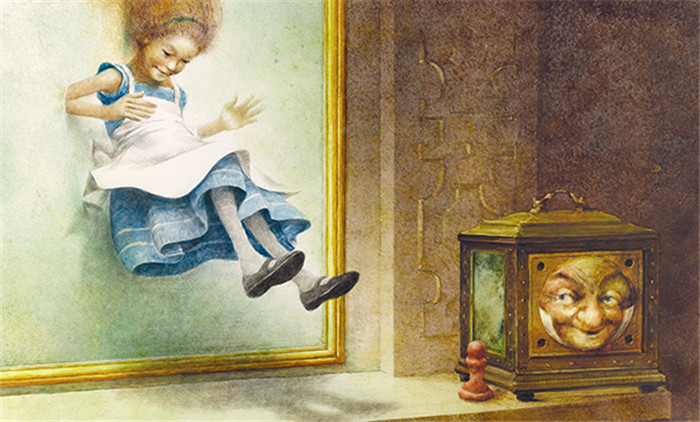 “你喜欢住在镜子屋里面吗,基蒂?不知道那里的人会不会给你喝牛奶,也许镜子里的牛奶不好喝―可是,噢,基蒂,我们现在到了过道。你在镜子屋里看到的过道只是一小点,如果你敞开我们起居室的门,你看到的部分很像我们的家,只不过你知道以后的部分可能大不相同了。噢,基蒂,如果我们能进镜子屋该有多好啊!我可以肯定里面有许多好看的东西!基蒂,我们假装有一个通到里面去的办法。我们假装镜子像薄雾一样是软的,我们可以通过。嗨,听我说,现在它变得像雾一样了!很容易通过―”她说这话时已经上了壁炉台,虽然她不知道是怎么上去的。再说,镜子果真像银光闪亮的雾气那般逐渐消失了。