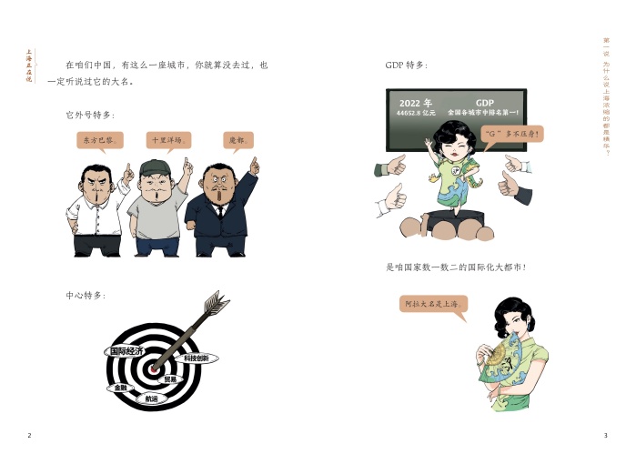 《上海正在说》以风趣幽默的语言、形式活泼的漫画,为小读者讲述上海的今昔故事。 上海,从历史上毫无存在感的“小透明”成长为中国近代工业的摇篮, 从中国革命的红色之源发展为国际大都市,尤其在新时代,发展成就举世 瞩目,还创造了很多“世界之最”。 红色文化、海派文化、江南文化交相辉映的上海,16 个区各具特色,生动演绎着“海纳百川、追求卓越、开明睿智、大气谦和”的城市精神…… “魔都”上海不同寻常的魔力与魅力,等你来发现!