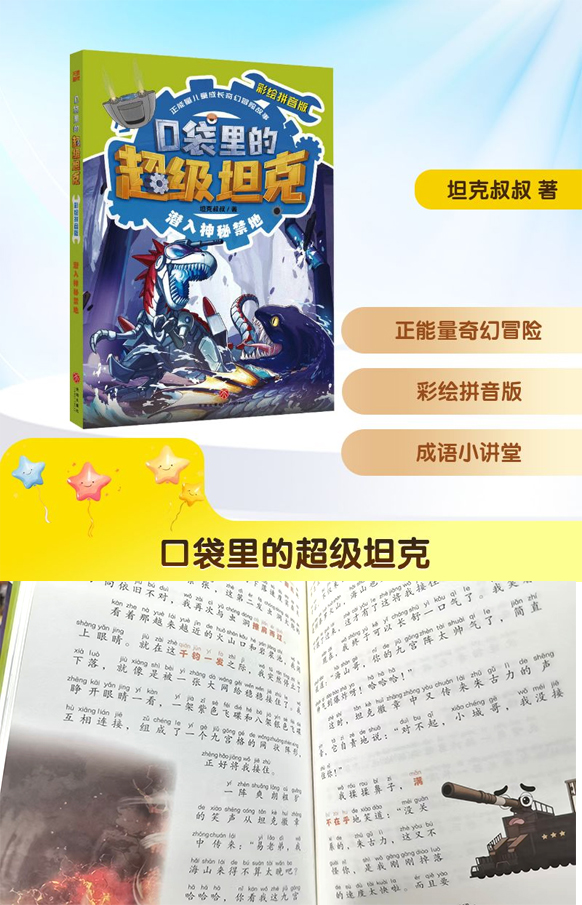 本册讲述了易小城和超能装甲兵团成员飞往卡鲁星,潜入神秘禁地寻找水源,和游击队员一起对抗戈鲁总督的故事。图书内容全部进行拼音标读,既帮助孩子学习拼音,又便于识字不多的孩子进行自主阅读。此外,书中还将成语进行标记,并在每个章节后设置“成语小讲堂”,帮孩子积累成语。