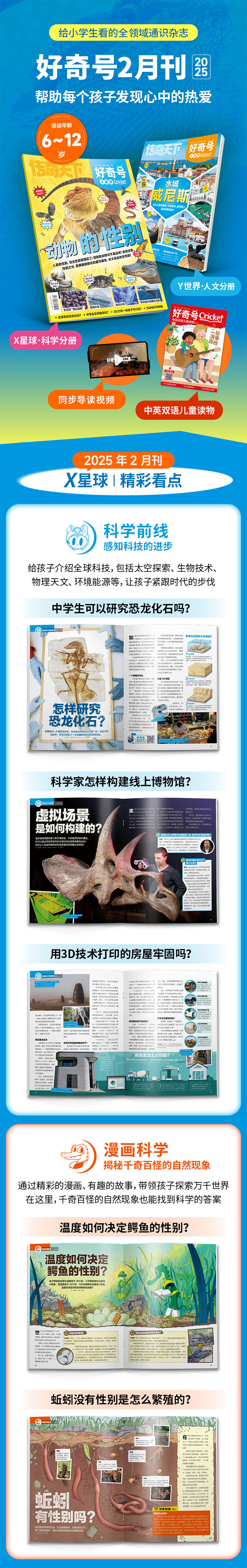 杂志以图文并茂的方式,讲述科学原理,横跨大科学,涵盖环境生态,自然科学,历史人文,生物医学等各领域,由科普专家创作,内容深入浅出,通俗易懂。杂志构建了权威、系统的知识图谱,将复杂的科学化繁为简,充分满足孩子对世界的好奇以及一家大小的求知渴望。