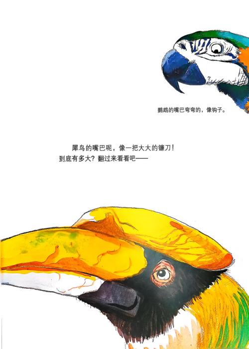 这是一本以动物的外貌特点为主题的有趣的自然科学绘本。本书主要选取了犀鸟、醍醐、信天翁和松鼠四种动物,它们都有一个有趣的特点,就是都是“大大大大”的:犀鸟和醍醐的嘴巴大大大大的,信天翁的翅膀大大的,松鼠的尾巴大大的。以这种有趣的且图文并茂的方式让孩子最近距离地接触自然、接触动物。