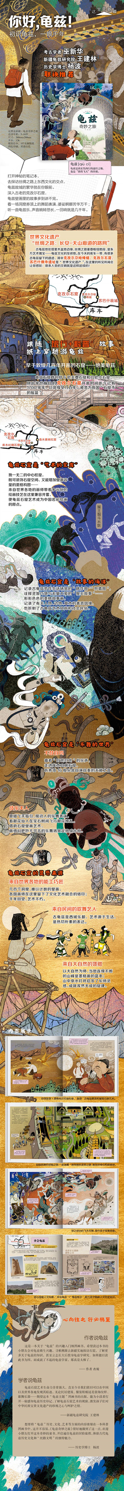 爸爸的一本旅行手账,让小主人公与今天新疆的库车,也就是古代的龟兹发生了奇妙而不可思议的连接。她身临其境和爸爸一起探险,跟随唐代戍边战士张小敬见证古龟兹文明。龟兹奇特的地貌、神秘的遗迹、古老的城池,令读者仿佛在时空中穿梭,尽情感受历史的震撼。最令人叹为观止的是比敦煌石窟更古老、闻名中外的龟兹石窟,小读者可以跟随作者的想象,亲身观摩辉煌的壁画洞窟,沉浸式欣赏动人的龟兹乐舞,获取来自千年艺术宝库的精神养分。 打开神秘的笔记本, 去探访丝绸之路上东西文化的交点, 龟兹故城的繁华就在你眼前。 深入古老的克孜尔石窟, 龟兹壁画里的故事多到讲不完。 看一场洞窟券顶上的舞蹈表演,婆娑婀娜芳华万千; 听一曲龟兹乐,声音婉转悠长,一回响就是几千年。