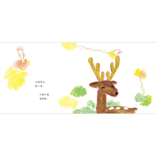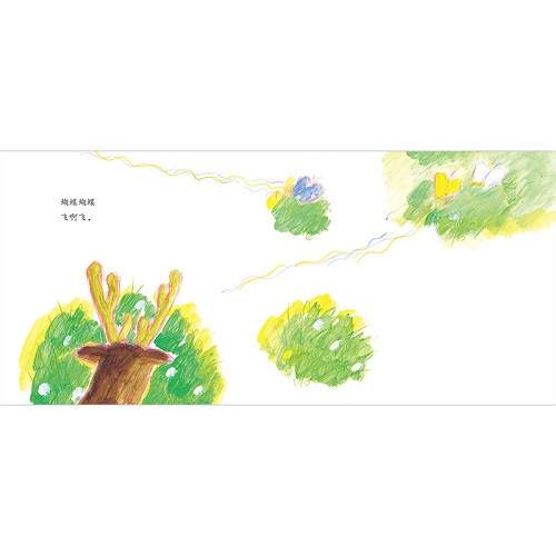 《蝴蝶蝴蝶飞啊飞》是广西师范大学出版社魔法象图画书王国推出的作品之一。 一只小蝴蝶在草丛中快乐地飞翔。它飞到兔子的耳朵上,兔子非常开心。蝴蝶继续飞翔,又飞到了一只小鹿的角上。小鹿看到蝴蝶,也非常地快乐,蝴蝶又继续往前飞,飞到了小象的鼻子上。小象开心极了。蝴蝶在小象的鼻子上又停留了一会儿,又飞到了小老鼠的头上,小老鼠看到蝴蝶也开心极了。 本书语言明快简洁,画面温馨可爱,生动地表现了小动物的友谊。