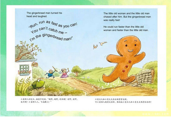 小老太太做了一个小姜饼人,他跳出烤箱,飞快逃跑。一边逃还一边得意洋洋地喊“跑啊,赶快跑啊!谁也追不上我!”引来老爷爷、老奶奶、奶牛和马儿的追赶。直到他遇到一条河和一只狡猾的狐狸……