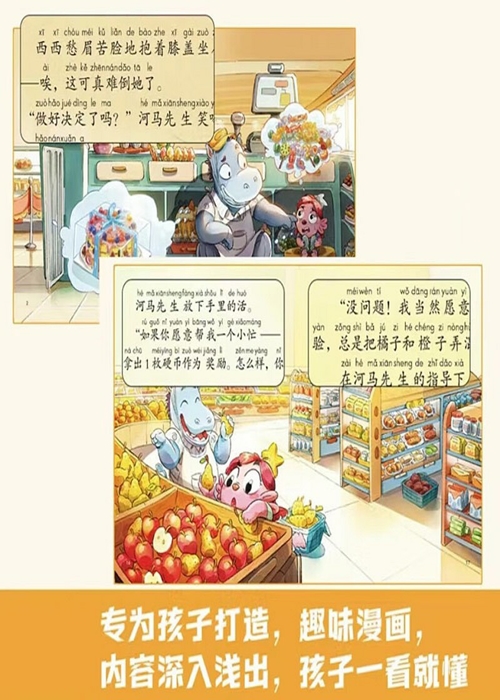 这套书是关于经济学启蒙教育的注音读物,共8册 分别是钱是什么?为什么爸爸要上班?钱该怎么花?好玩的网络经济,关于投资赚钱那些事儿,信用也能当钱花,我是理财小达人,那些比钱更重要的东西。 外星人西西一家因意外迫降地球,为了更好更快的适应地球生活,他们必须了解我们当下的货币流通法则和金融行为,也因此发生了很多温馨搞笑的故事。 本套书通过8个贴近生活的小故事,讲述了交易方式、存钱、记账、预算、信用等8个核心的经济学理念,意在帮助小朋友建立经济学思维,树立正确的金钱观、价值观和人生观,于潜移默化中教会他们认识金钱,学会存钱,学会花钱,学会赚钱