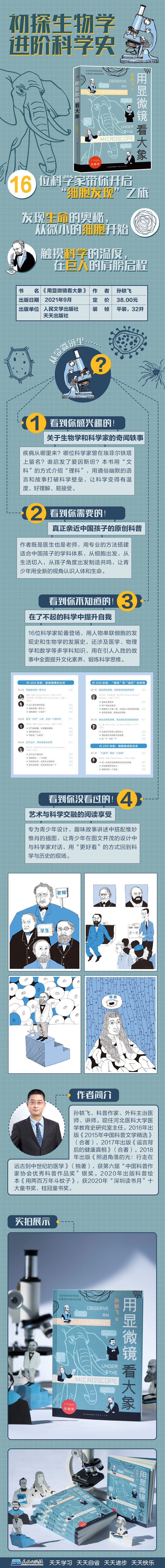 1. 原创力· 一部真正亲近中国孩子的科普作品; 2. 创新力·文学的故事 史学的视野 科学的思维=精心打造有温度的原创“软科普”; 3. 视觉力·精美的设计,惟妙惟肖的插图,图文并茂,回到科学现场; 4. 专业度·专业审读,化繁为简,十余位科学家传记故事带孩子轻松掌握课内外生物学相关的关键知识点。