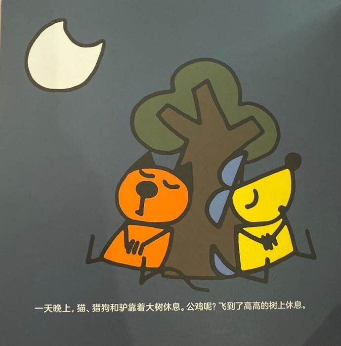1.画风至简却不幼稚,简单的几何轮廓,粗粗的黑色描边,纯色的色块填充,符合小宝宝的认知能力和观察特点。