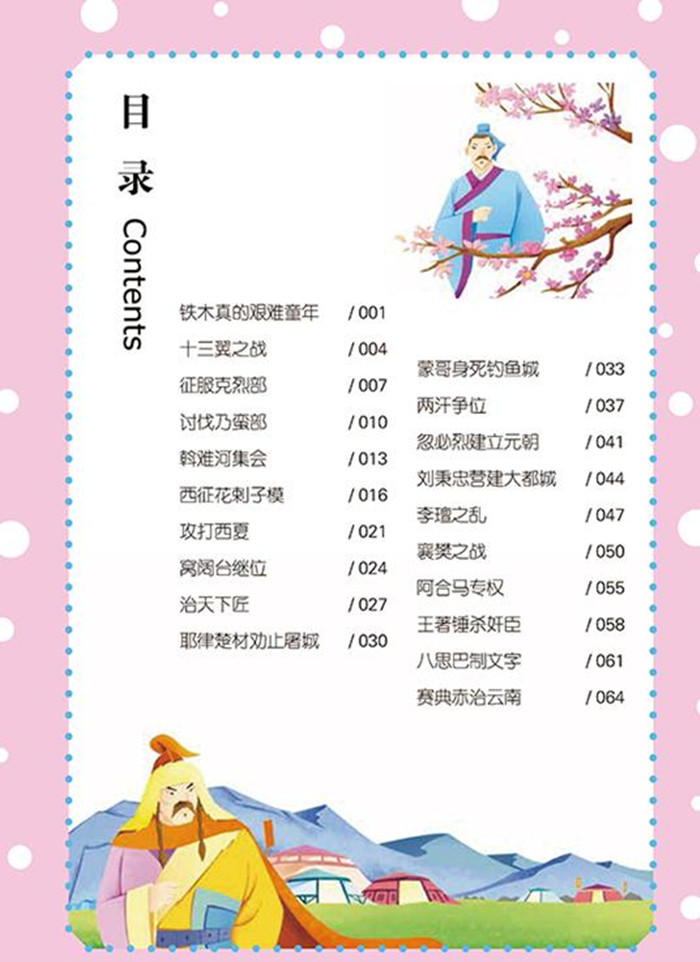 本书按照时间发展的顺序,介绍了元代重要的历史人物和重大的历史事件,以“耶律楚材劝止屠城”“忽必烈建立元朝”“刘秉忠营建大都城”“襄樊之战”“富春山居图”“朱元璋投军”“鄱阳湖大战”等为题综合了历史小故事四十多个。全书图画明快活泼,大字拼音,有声朗诵,适合儿童阅读需求,是向少年儿童传播传统历史文化的极佳读物