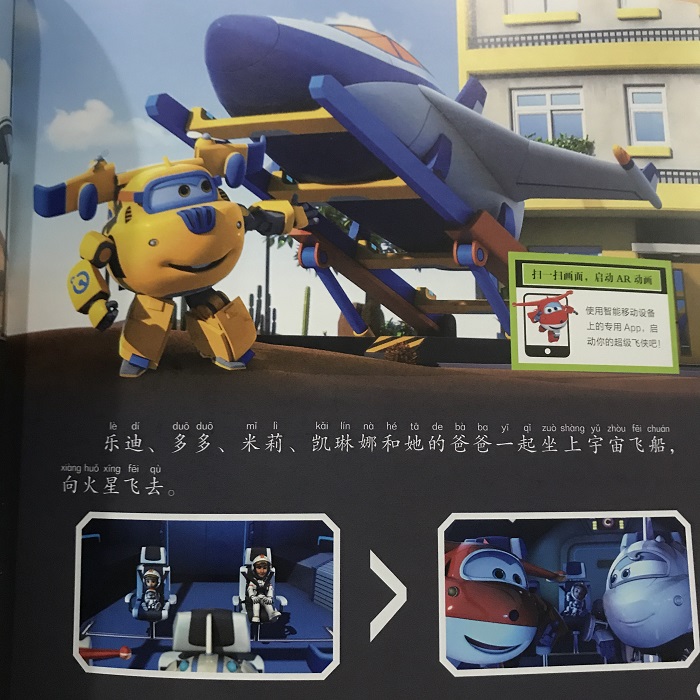 这套书全景再现了动画片里的完整故事,并添加了AR增强现实技术,只需手机一扫,便呈现出真实立体的超级飞侠魔法世界。每个AR视野,都是对书中知识点的多角度介绍,寓教于乐,让孩子们更好地学习、掌握丰富的科学文化知识。
