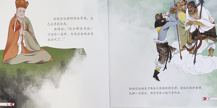 孙悟空拜唐僧为师之后,保护他去往西天取经,当师徒二人经过蛇盘山鹰愁涧的时候,忽然从水底窜出一条白龙,一口把唐僧骑的白马吃掉了。孙悟空与白龙打斗起来,白龙打不过就变成一条水蛇逃入了水底,任凭孙悟空怎样叫喊,也不出来。无奈之下孙悟空召唤天神去请观音菩萨。观音来到鹰愁涧,告诉悟空,那条白龙原本是龙王的太子,因为纵火烧毁了明珠,犯下死罪,是观音求情保他性命,在鹰愁涧等候唐僧,愿为唐僧做脚力,随他一同去西天取经。观音呼唤白龙出来,把手中净瓶的水洒在白龙身上,白龙瞬间变成一匹白马,悟空请师父坐上白马,顺利渡过了鹰愁涧。