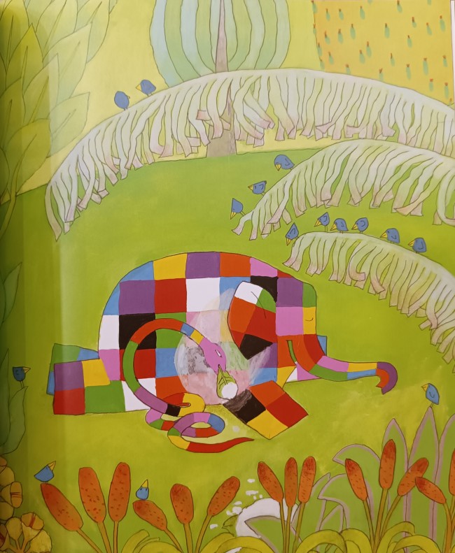大象们想捉弄艾玛一下,他们去找花蛇出主意。花蛇告诉他们,说艾玛看起来很苍白就行了,说的人多了,艾玛自然就信了。于是,大象们都对艾玛说“你看起来很苍白”,而艾玛也好像真的信了,听从大家的话去睡觉了。没想到,当大象们偷看熟睡的艾玛时,却发现它真的越来越苍白......