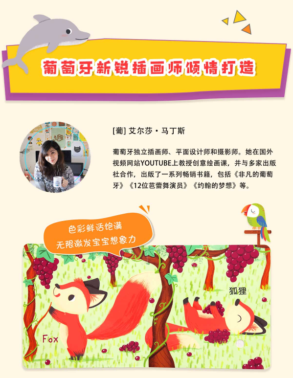 一、火爆全网的“听,什么声音?”系列全新升级之作 上市三年间,听,什么声音?系列风靡各大电商与母婴社群平台,收获万千宝爸宝妈的五星好评,已成为网红发声书。这为萌趣版的出版打下坚实基础。 二、24种动物的奇妙叫声,让宝宝足不出户逛遍动物园! 内容涵盖丛林动物、水生动物、鸟类以及宠物等四大方面,选取宝宝喜爱的24种萌萌动物,用小手轻按圆形按钮,即可聆听动物的真实叫声!视听结合,同步调动宝宝的视觉、听觉和触觉!带给宝宝接连不断的惊喜,爸爸妈妈直呼“哇哦”! 三、内容、音效、材质全面升级,宝宝玩得更过瘾! ● 所有声音均采集自然界真实的动物原声,蕴含着没有人为加工的原始韵律。经专业音效处理,音质明亮柔和,有立体感!宝宝耳育启蒙神奇利器! ● 发声器高低两档音控,满足多场景需求!高声档适合嘈杂户外,低声档适合安静室内。 ● 发声器与线路板部分首次采用新型EVA材质作为外壳,绿色环保又便携!0-2 岁宝宝可以轻松捧着读,外出携带也能减轻妈妈爸爸的负担啦! 四、玩“我来模仿你来猜”小游戏 寓教于乐! 分辨这些自然界*真实的原声,让宝宝找出特征,做细致的区分。不仅能双向增强模仿力、记忆力和辨识力,还让亲子共读变得和做游戏一样有趣: “喵~喵~喵~” 是谁的叫声?“喵~喵~喵~” 是小猫的叫声! “嘎~嘎~嘎~”是谁的叫声?“嘎~嘎~嘎~”是柯尔鸭的叫声! 五、中英双语 带宝宝认知24种动物英文单词 每种动物名称同步中英双语,宝宝在认知、辨别动物声音的同时,还能进行早期英语启蒙,为日后的英语学习打下基础! 六、葡萄牙新锐插画师倾情打造 [葡] 艾尔莎·马丁斯,葡萄牙独立插画师、平面设计师和摄影师。她在国外视频网站YOUTUBE上教授创意绘画课,并与多家出版社合作,出版了一系列畅销书籍,包括《非凡的葡萄牙》《12位芭蕾舞演员》《约翰的梦想》等。 七、绿色安全 全方位呵护宝宝健康! 全书采用进口可再生白卡纸,绿色大豆油墨印刷,健康环保。同时,书页全部为圆角处理,有效呵护宝宝稚嫩的小手,妈妈们可以放心啦!