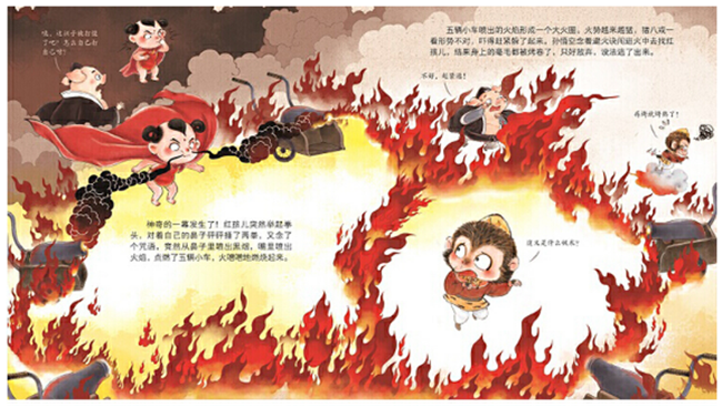 这是一套专门为39岁小朋友绘制的西游取经故事集,一共包含5个耳熟能详的故事:《齐天大圣》《偷吃人参果》《三打白骨精》《大战红孩儿》《三借芭蕉扇》。绘本故事内容精彩,既尊重原著,又符合当今儿童的阅读心理,是孩子接触中国古典文学名著的绘本版本;改编的文字生动活泼,口语化表达,通俗风趣;绘制的角色萌趣可爱,水墨背景体现东方神韵,呈现大气写意的视觉美感;电影分镜式设计,冲击力强,符合当今儿童的观看习惯。《大战红孩儿》:唐僧师徒四人取经路过六百里钻头号山,遇到了“圣婴大王”红孩儿。红孩儿设计掳走了唐僧,动用三昧真火差点儿烧死孙悟空,竟然还假扮成观音菩萨欺骗猪八戒……神通广大的孙悟空遇到了“硬骨头”,拯救师父师弟的过程真是险象环生。红孩儿被打败了吗?唐僧师徒顺利西去了吗?
