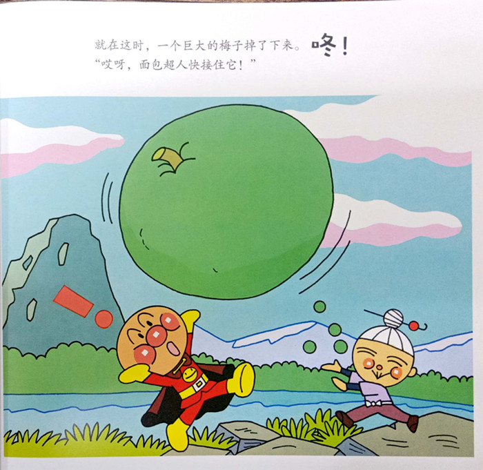 面包超人是制作面包的果酱大叔所做出的红豆面包,因刚好生命之星坠落在面包上而诞生。《面包超人和飞天梅子/面包超人友情故事系列》主要讲述的是面包超人喜欢帮助有困难的人,今天他们所在的城镇有了麻烦,天上掉下来一个大梅子,压坏了很多东西,面包超人集结了城镇里的人,大家一起阻止了滚动的大梅子。原来是梅子男孩在里面,给大家带来了很好酸甜好吃的小梅子。