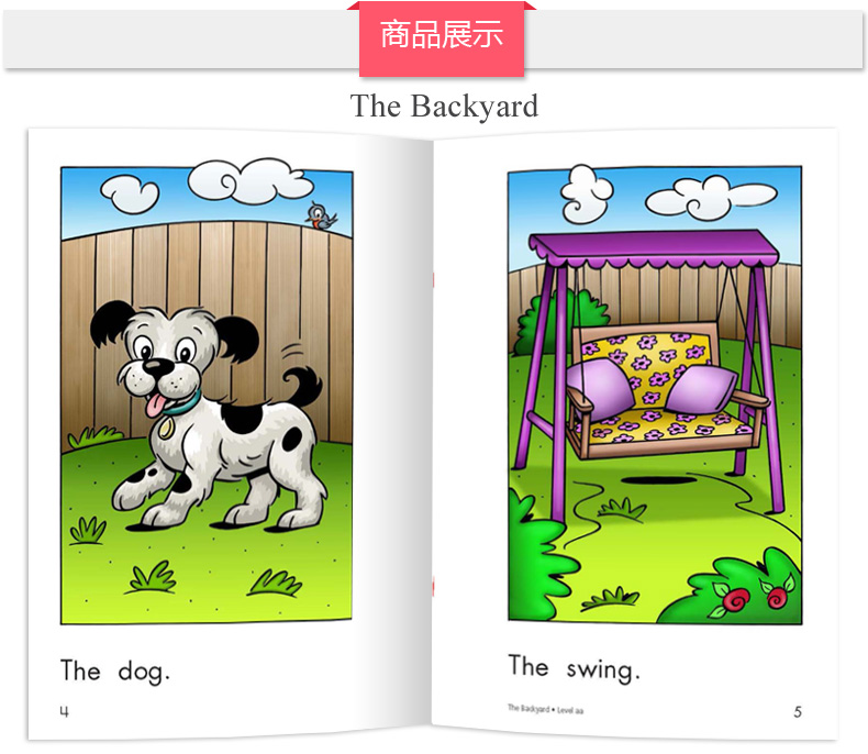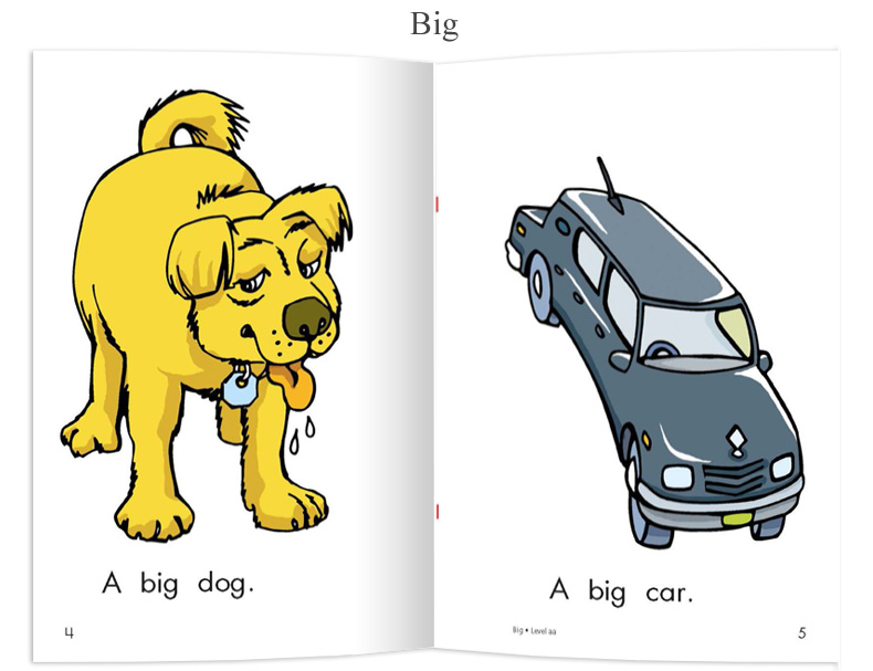 该阶段的书多以图片为主,大多10-12页左右,从aa阶段每页只有2-3个单词逐级过渡到c级的简单句。句式简单,并以重复式为主,便于理解和记忆。