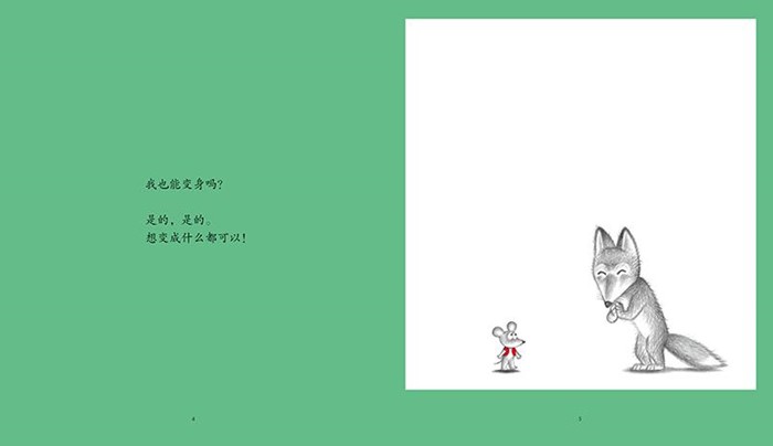 建议分类:儿童绘本。变身,体验一把成为别人的感觉,同时观察一下变成其他模样后他人对自己的反应,是幼儿最喜爱的变身游戏,也是一个人从出生开始寻找自我定位的一种方式。鼠小弟变身成了兔子先生,他走在路上,遇见了鼠小妹、鸭子、猴子、小猪……都没认出来他!鼠小弟觉得变身的感觉真不错!可是,鼠小妹真的没有发现鼠小弟变身了吗?直到“兔子先生”碰到一位从没见过的兔子小姐,她是谁呢?为什么一直跟着鼠小弟呢?