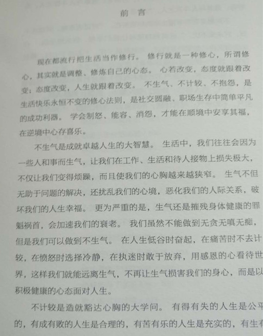 本书是一本心灵修养类图书,详细分析了生气、计较、抱怨等负面情绪产生的原因及给人们带来的危害,告诉人们要摒弃这些负面情绪,以一颗热情的心拥抱生活。书中从自我、家庭、事业、生活等多个方面、多个角度详细阐释了改变态度,消除生气、计较、抱怨等负面情绪的方法。