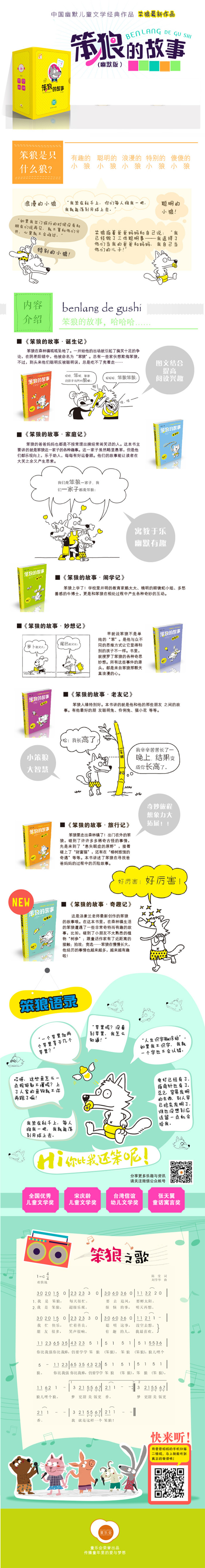 系列故事书《笨狼的故事》是十分出色的作品,里面有些故事会让我想起英国作家米尔恩的*名著《小熊温尼·菩》的幽默,因为它不仅同样以人物的性格推动故事的展开,而且小笨狼的天真、善良,无知但却充满了求知欲和行动力的性格也与小熊温尼·菩有几分相似,而故事的热闹荒诞或异想天开,又有美国迪斯尼动画片《米老鼠和唐老鸭》之风格。