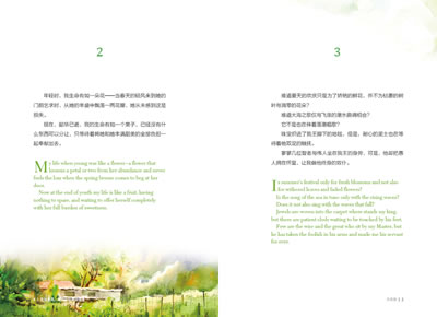“我年轻时的生命犹如一朵鲜花”,空灵的诗歌仿佛山坡草地上的一丛丛野花,在早晨的太阳下探出头来,色泽灿烂,清香迷人。一朵花就是一个美丽的世界,其中蕴涵的人生哲理令人感受到振奋人心的力量,唤起人们对大自然、人类、世界上一切美好事物的爱心,让每一天充满欢乐与光明。“我的心像是一阵风,像是张开的帆,要飞向那远处的美丽海岛。”阅读着一首首美丽的小诗,如夏日里的清风拂过脸庞,尘世的疲惫一扫而光,心灵返回最初的纯净。