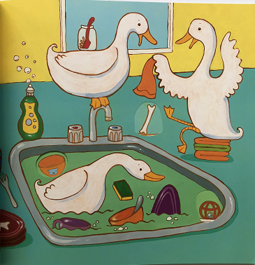 农场里的动物都不见了,所以农夫汤姆在寻找他们,他没想到这些动物竟然跑到了他的家里。奶牛们在厨房偷吃;鸭子们在水池里游泳;小猫和小狗们在食柜里玩耍;小羊们在浴室里洗澡;小猪们在花园里嬉戏;山羊们在花房里打碎了好多的花盆。后,农夫汤姆终于找到了他们,把他们都赶回了农场。这本书的重点在于动物和动物的声音,而孩子的启蒙教育一般都是从动物和动物的叫声开始,孩子们对这些可爱的动物十分有好感也很好奇。可以透过前页这个洞看到下一页的图,对下一个地点也有提示。
