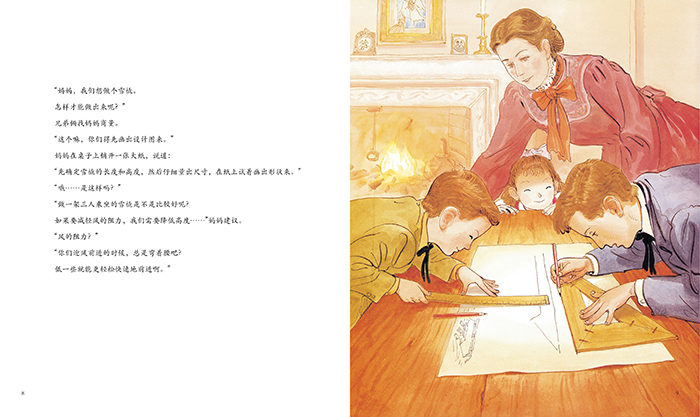 真是回答儿子“为什么”的法宝,如果没有《莱特兄弟》这本传记绘本,我恐怕没办法回答他关于飞机怎么来的这个问题。对于上幼儿园的孩子,用图画的方式讲述莱特兄弟如何在从少年时到到成年发明第一架飞机的经历,故事就变得非常容易理解了:爸爸偶然买回来的飞行玩具,结果去激发了莱特兄弟设计风筝、飞行器甚至飞机的梦想。这样丰富的童年故事,或许能更好得向孩子传达名人的伟大。