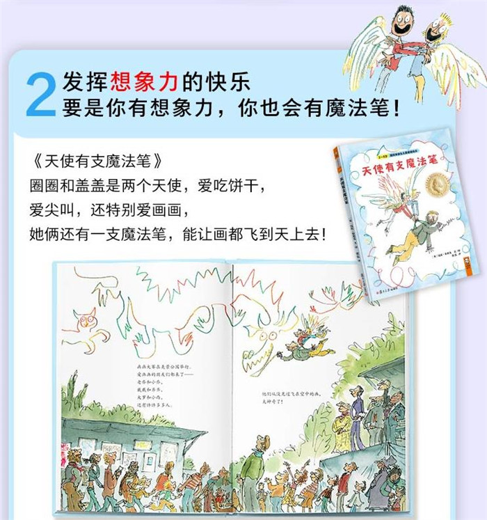 (3) 昆廷的画是吸引无数孩子进入充满快乐和想象力的阅读世界的开放性邀请。他是知名儿童文学大师罗尔德•达尔御用插画师,被誉为给达尔的故事赋予生命力的杰出插画家。