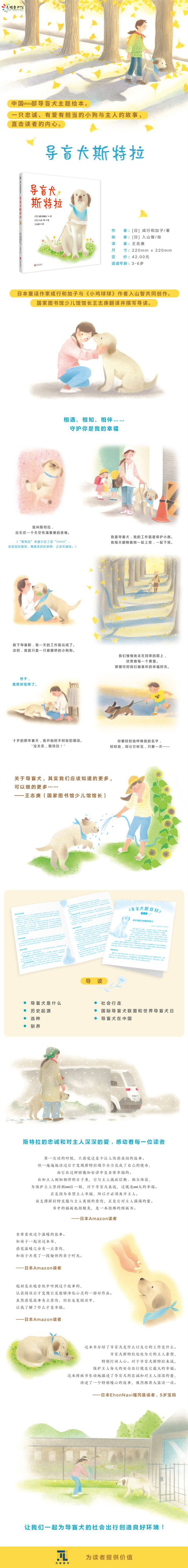★ 中国首部导盲犬主题绘本 ★ 一只忠诚、有爱有担当的小狗与主人的故事,直击读者的内心 ★ 日本童话作家成行和加子与《小鸡球球》作者入山智共同创作 ★ 国家图书馆少儿馆馆长王志庚翻译并撰写导读