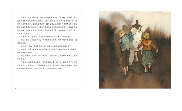 “不行啊,老婆,”丈夫说,“这我不能干。我不忍心把自己的孩子单独丢在林子里;真那样,野兽很快会来吃掉他们的!”
