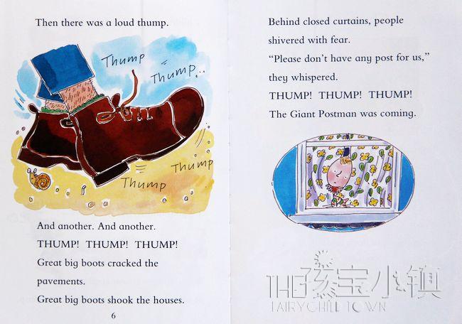 The Giant Postman is creating mayhem in the village - until Billy comes to the rescue with a brilliant idea! He writes the giant postman a letter, explaining how frightened everyone is, and bravely delivers it himself. The Giant is delighted - he's never had any post before! He sends Billy a reply saying: sorry, but giants just can't help being clumsy...The story ends with a giant birthday party, and because the villagers choose such a clever present the whole village is able to celebrate their new friendship with the giant postman as a result!