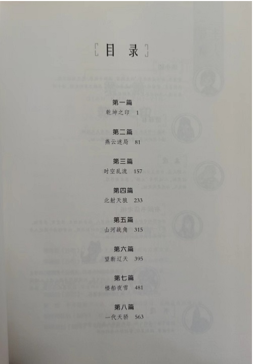 乾坤之印;燕云迷局;时空乱流;北射天狼;山河战角;望断辽天;楼船夜雪;一代天骄。