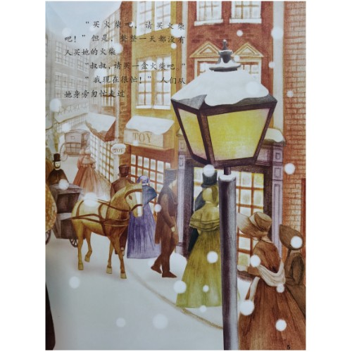 一支铅笔可以描绘所有你想到的、看到的,而彩铅给你的世界填上了颜色。卖火柴小女孩飞舞的头发、绝望的泪水、火光中美丽的景象以及缓缓飘落的雪花,都通过彩铅的笔触呈现出细腻、轻盈的质感。——绘者按 品格主题——梦想与同情 《卖火柴的小女孩》讲诉的是一个家境贫寒的小女孩赤着脚在大年夜里出来卖火柴,火柴的温暖给她许多美好的幻象:温暖的火炉、喷香的烤鸭、美丽的圣诞树和和蔼可亲的奶奶,使她感到很幸福,但还是因为太冷而冻死与街头的故事。反映了当时社会的人的冷漠无情,作者安徒生把小女孩儿现实生活和美好幻象对照着写,更衬托出了小女孩的可怜和悲惨。 作者简介