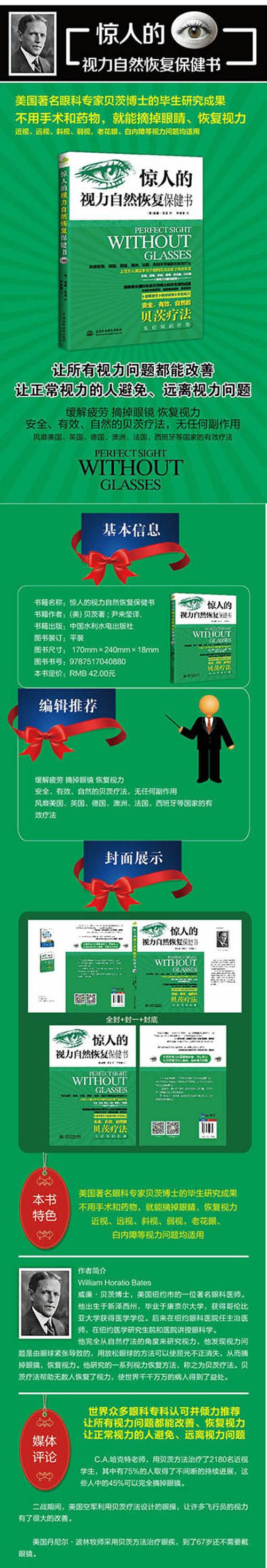 缓解疲劳 摘掉眼镜 恢复视力 安全、有*、自然的贝茨疗法,无任何副作用 风靡美国、英国、德国、澳洲、法国、西班牙等国家的有*疗法 世界众多眼科专科认可并倾力 让所有视力问题都能改善、恢复视力 让正常视力的人避免、远离视力问题 C.A.哈克特老师,用贝茨方法治疗了2180名近视学生,其中有75%的人取得了不间断的持续进展,这些人中的45%可以完全摘掉眼镜。 二战期间,美国空军利用贝茨疗法设计的眼操,让许多飞行员的视力有了很大的改善。 美国丹尼尔•波林牧师采用贝茨方法治疗眼疾,到了67岁还不需要戴眼镜。