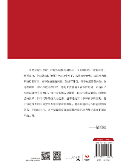 本书从李鸿章的早年落拓,写到他镇压太平天国,创办洋务运动使其声望达到顶点,再到甲午战争撞碎其强国梦,迅速由盛而衰,最后只能周旋于列强的外交舞台直至死去的悲壮一生。梁启超把李鸿章与曾国藩、张之洞、俾斯麦、加富尔、伊藤博文等人做了比较,指出李鸿章是怀着忍辱负重、死而后已之心为清政府“修修补补”的,只不过他缺少长远的政治眼光,不懂得为后世立百年大计。