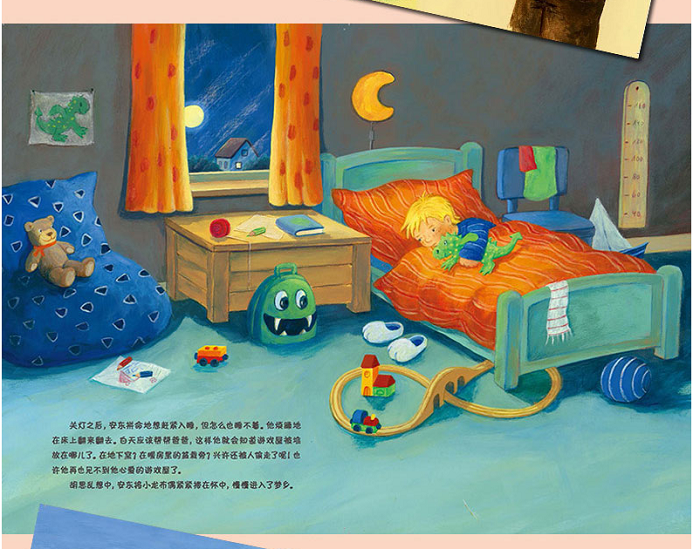 孩子们都害怕做恶梦,恶梦里会出现各种各样可怕的怪物。本书的主人公安东也是如此。在经历了白天的种种不愉快后,一只凶狠又贪婪的利爪怪闯进了安东的梦乡,它抢走了安东所有的东西。被吓醒了的安东惊慌失措,他该怎么办呢?利爪怪还会再来吗?让我们在书中寻找答案吧! 本书为德国引进版绘本故事,主题极具吸引力,故事紧凑生动,图片精美,让孩子在阅读中正确认识做梦这件事并克服对恶梦的恐惧心理。