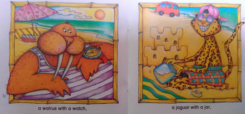 语言学习:本级图书每页以一个简短的句子为主,通过一两个单词的替换,使句型得以不断的重复。