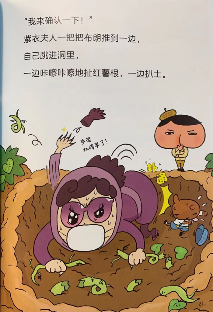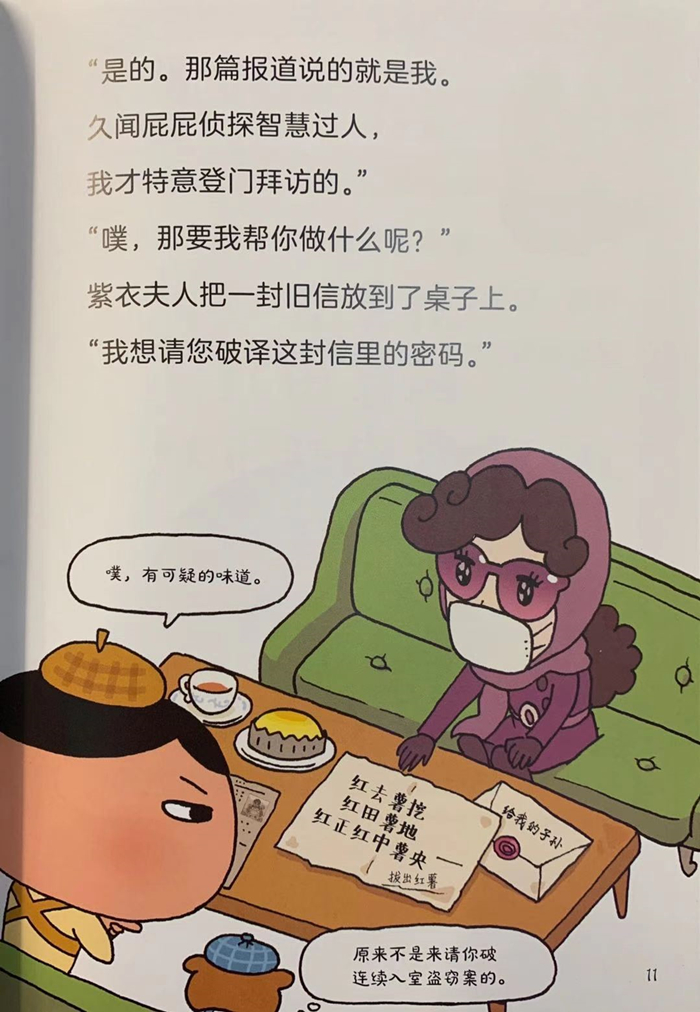 某天,屁屁侦探与助手布朗在看一起连续闯空门事件犯人尚未抓到的新闻时,一位从头到脚都穿着紫衣的女性委讬人登门拜访。这位女性好像感冒了,用极沙哑的声音自我介绍,并希望屁屁侦探能帮忙解开祖先遗留下来的宝物所在的暗号。那张从银行保险箱领出来的信上,写着看似极不通顺的古怪语句,但是没想到,屁屁侦探一下子就解开了暗号,而且还自告奋勇要与紫衣夫人一同前往藏宝地点,他们来到群山环绕的番薯田,挖了半天只找到一个小盒子,里头放着一张图。屁屁侦探按照图上的指示,并根据他的推理发现一个放了许多宝盒的密室。就在紫衣夫人非常兴奋的时候,屁屁侦探却冷静的说:虽然找到宝藏了,但有件事没有解决喔,妳……不是紫衣夫人!咦,紫衣夫人是个冒牌货?证据在哪呢?而连续闯空门事件的犯人究竟是谁呢?……