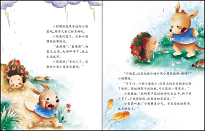小刺猬说:“我的果子已经给你吃去大半,剩下的不多了,不能再给你,我要运回家里去。”