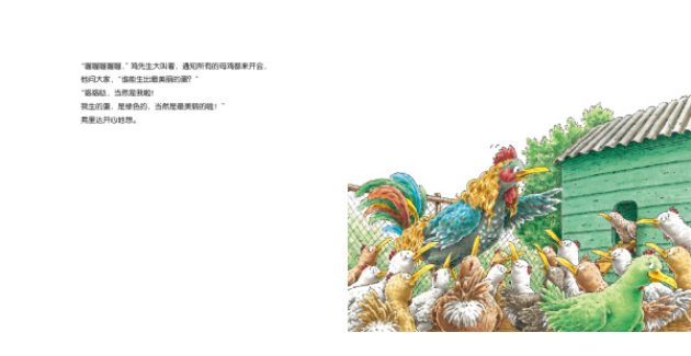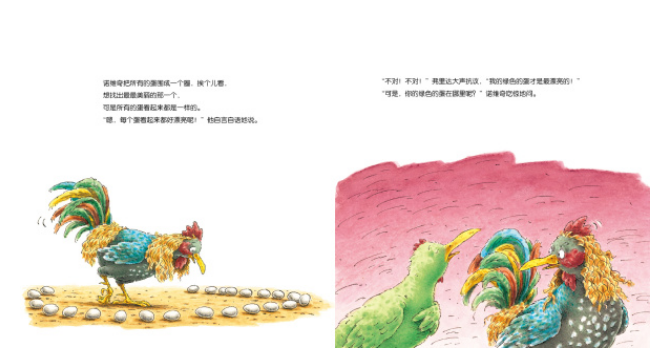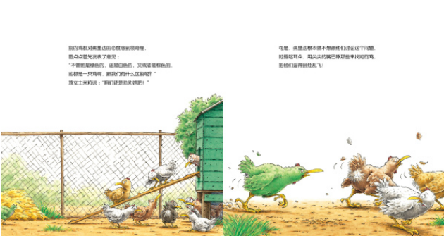 在一面破碎的镜子前,弗里达惊讶地发现,自己竟然是一只绿色的母鸡,像青草地那么绿! “咯咯咯,咯咯咯,我是一只好棒的母鸡!”弗里达每天都在农舍里大声唱。“你为什么觉得自己好棒呢?”鸡女士圆点点奇怪地问。“你可真是个笨蛋,没看到我是绿色的吗?”弗里达骄傲地回答。从那以后,她再也不想跟农舍里的别的鸡说话了。她高昂着头,独自在农舍里散步,连看都懒得看别的鸡一眼,她觉得他们是多么笨啊!有一天,鸡笼里来了一只漂亮的大公鸡,他想选出一只最特别的母鸡。不过,要说与众不同,当然是要比下的蛋了。弗里达信心满满,作为一只绿色的母鸡,她下的蛋当然是绿色的,“最特别的母鸡”称号她当之无愧。不过,事情是否向她想象的那样呢?这是一本引导小朋友正确认识自己,学会交际和学会接纳的绘本,让孩子在风趣的德式幽默中,发现与人相处的秘诀。