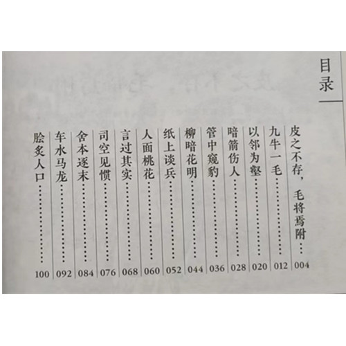 皮之不存,毛将焉附,九牛一毛,以邻为壑,暗箭伤人,管中窥豹,柳暗花明,纸上谈兵,人面桃花,言过其实,司空见惯,舍本逐末,车水马龙,脍炙人口