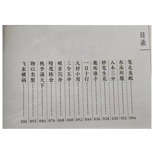 笔走龙蛇,东床坦腹,入木三分,妙笔生花,鹿死谁手,一目十行,大材小用,三令五申,破釜沉舟,暗度陈仓,桃李满天下,物以类聚,飞来横祸