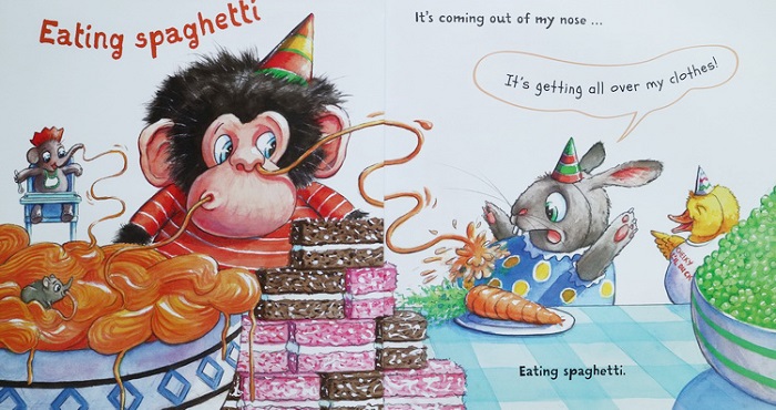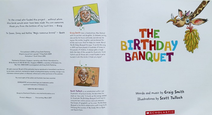 秉持著对音乐的初衷,以及让孩子在欢乐中学习的热诚,作者 Craig smith全心投入*的音乐创作上。他发现『音乐』能创造放松的氛围让人专注、自然舞动,而故事则提供情境的趣味性,他开始从日常生活找寻灵感,并将这些灵感投射于各种拟人化的动物上,打造出各具特色、印象深刻的动物主角,创造出一本本愉悦又风趣的精彩音乐绘本。 Craig smith擅长运用夸张、搞笑、无厘头的剧情惊喜,并且透重复、堆叠、朗朗上口的文字创意及句型,一层层的铺陈故事张力,再将这些故事结合他的音乐才华,用耳熟能详的弦律弹唱出一首首具有神奇吸引力、让人会心一笑、想一听再听的儿童歌谣。带有乡村歌谣的曲风,简单、容易却百听不腻,孩子只要听个几遍,马上就能跟著哼唱,一通又一遍,意犹未尽。 说是来自生活灵感的绘本故事,其实都富含作者想要传达给孩子们的重要意义。《 The birthday banquet》这场小象的欢乐生日派对,传递给孩子在生活中不论是吃东西、或是玩乐,都要懂得节制,以免造成身以及金钱上的过度负担。