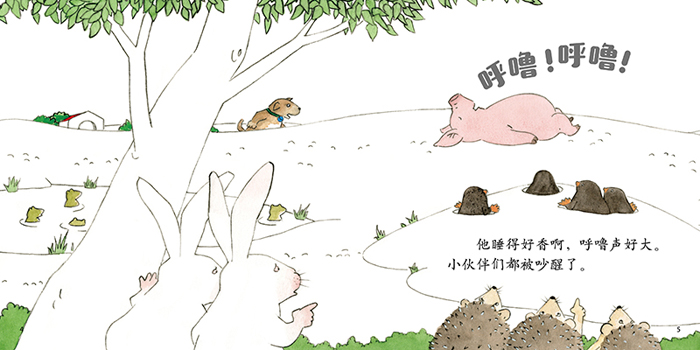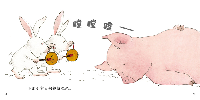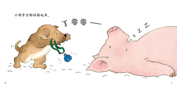 胖小猪睡着了,睡得好香,呼噜声好大,吵醒了小伙伴们。小狗摇起了铃铛,小兔子敲起了铜锣,小刺猬吹起了喇叭……都没有叫醒熟睡的胖小猪。这该怎么办呢?*后是谁叫醒了胖小猪呢……这是一个充满乐趣的故事,通过小动物们用不同的方式想要叫醒睡觉的胖小猪,让宝宝认知各种乐器及声音,同时体会小动物们之间相处的乐趣,感受浓浓的友谊和美妙的声音