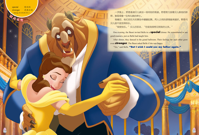 讲述了少女贝儿为解救父亲而与受诅咒化为野兽的王子朝夕相处,最终用真爱战胜魔法的故事。